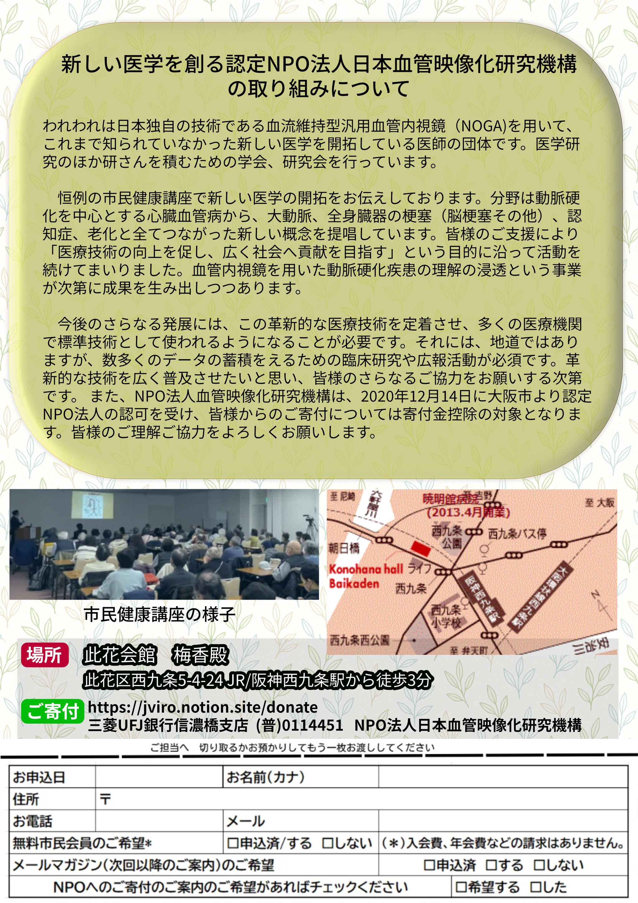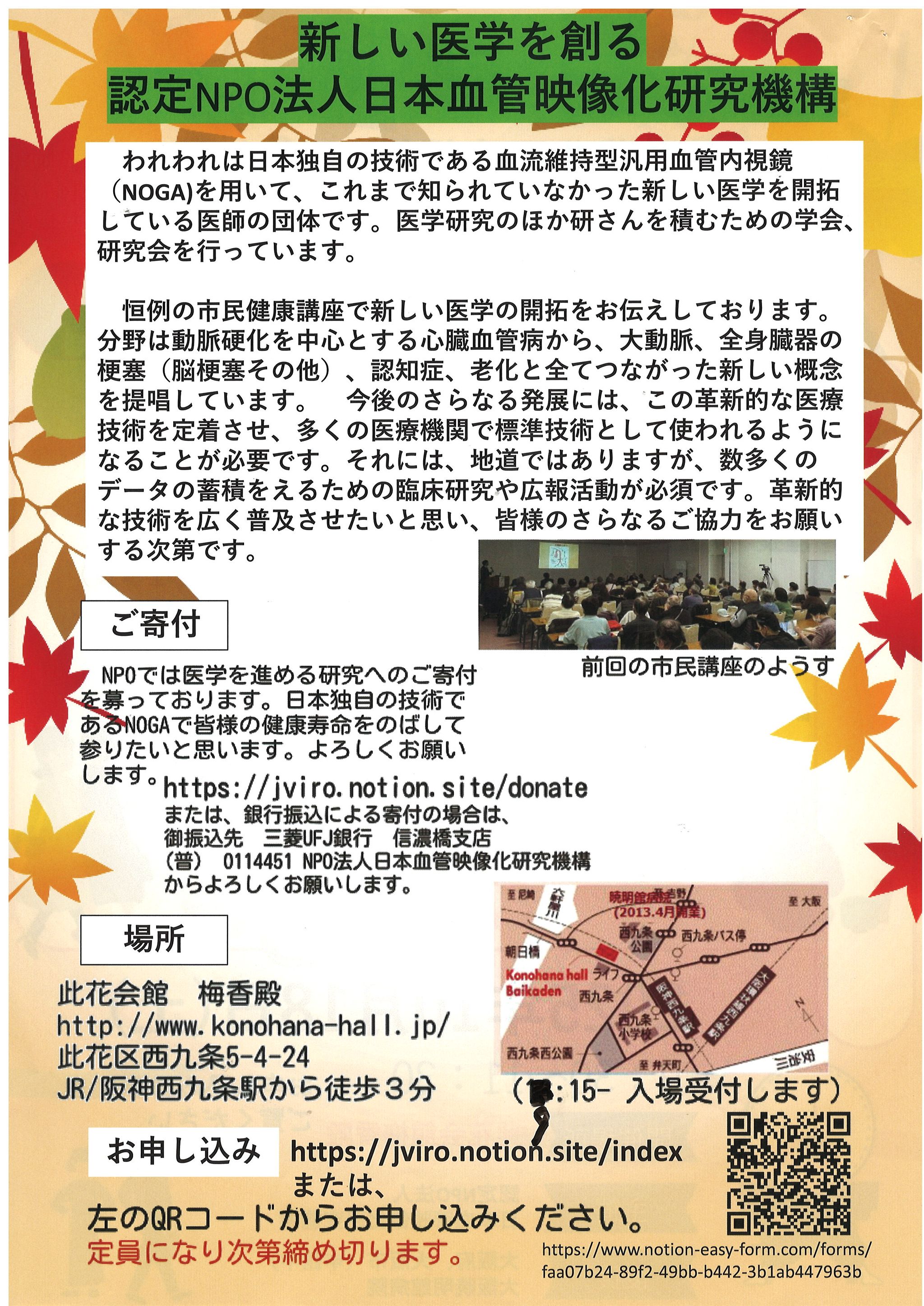 講演者:樋口義治先生(大阪けいさつ病院副院長、認定NPO法人日本血管映像化研究機構 副理事長)