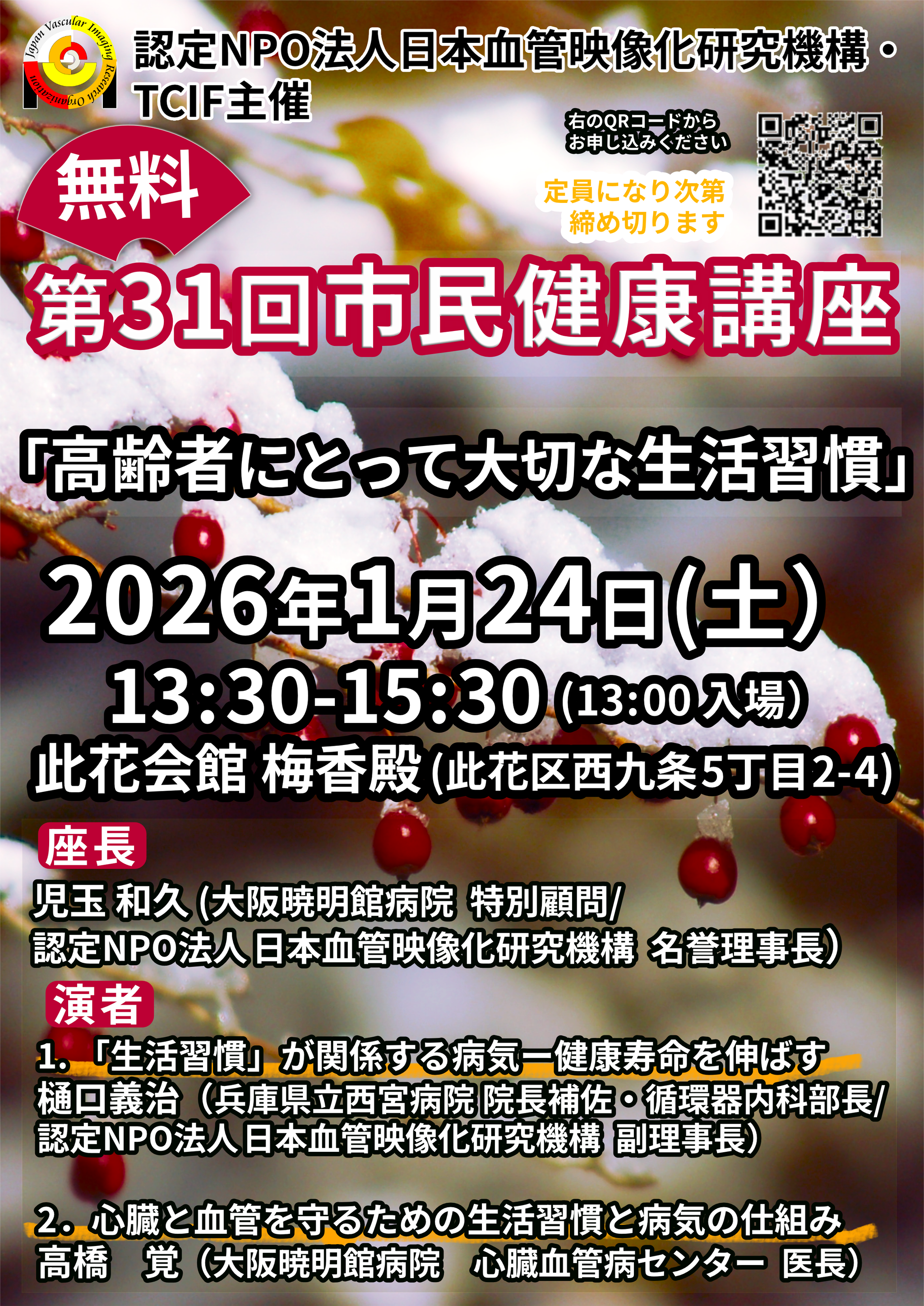 循環器病に関係する市民講座を定期的に行っております。第31回市民健康講座のご案内です。